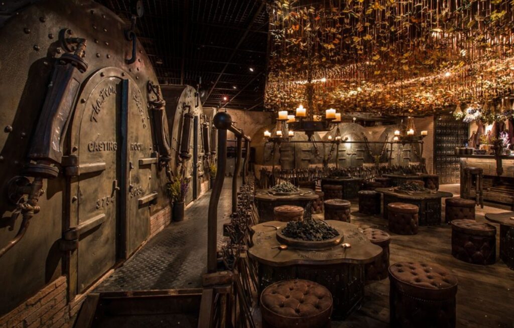 The Iron Fairies in Hongkong ist eine stilvoll inszenierte Cocktailbar mit märchenhafter Bergwerks-Ästhetik, verziert mit Tausenden von Schmetterlingen und Feenfiguren.
