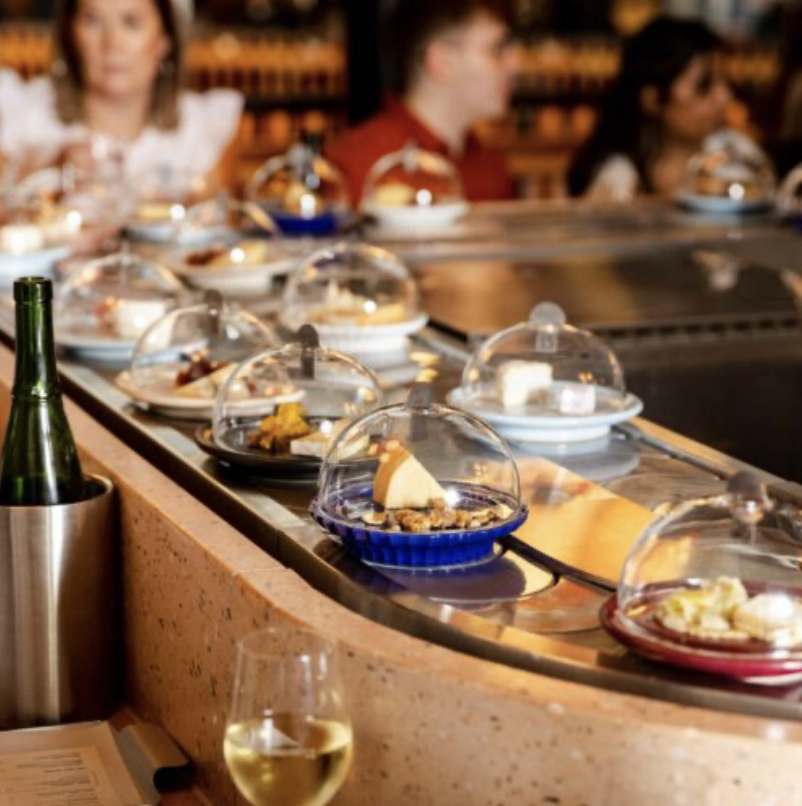 Ultimativer Indoor Food Market mit tollen Rezepten und manchmal Partystimmung nach dem Job. Käse-Spezialitäten auf dem Sushiband bei Pick & Cheese – hier vorher reservieren.